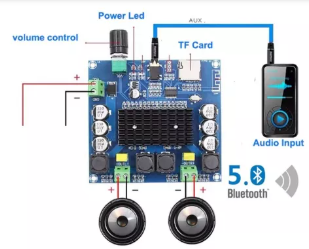 • Potencia 40W RMS por canal (Alimentado con 12V - 4 Amp y parlantes de 4 Ohm)