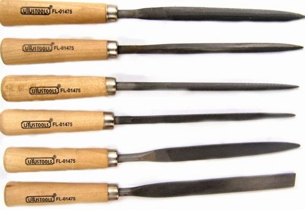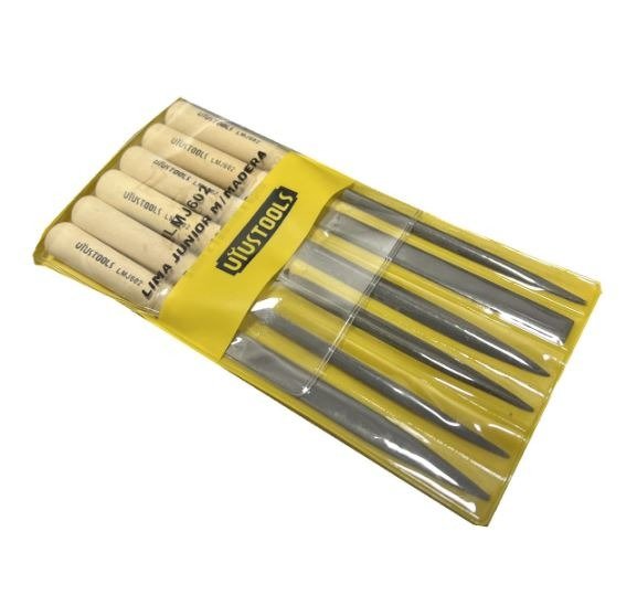 Set De 6 Limas Matriceras, Con Mango De Madera. Medidas: 180mm largo. Incluye Estuche.